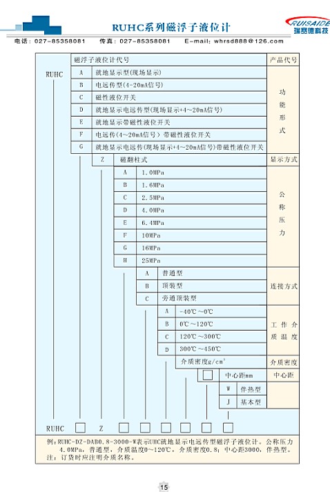 產(chǎn)品名稱:RUHC系列磁浮子液位計(多功能型)